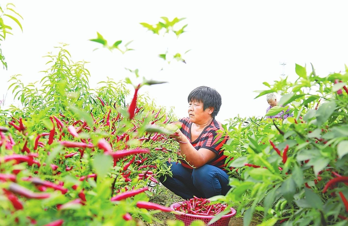 8月22日,河北省广宗县核桃园镇北李家庄村农民在采摘辣椒。