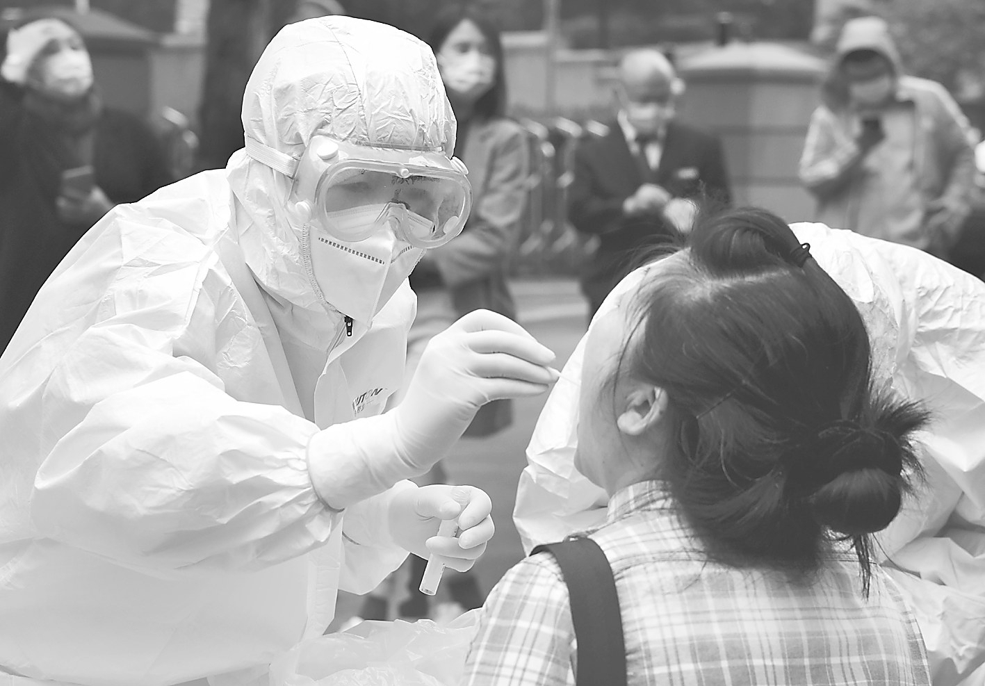 10月12日,市民在青岛市市南区香港中路一检测点进行免费核酸检测。