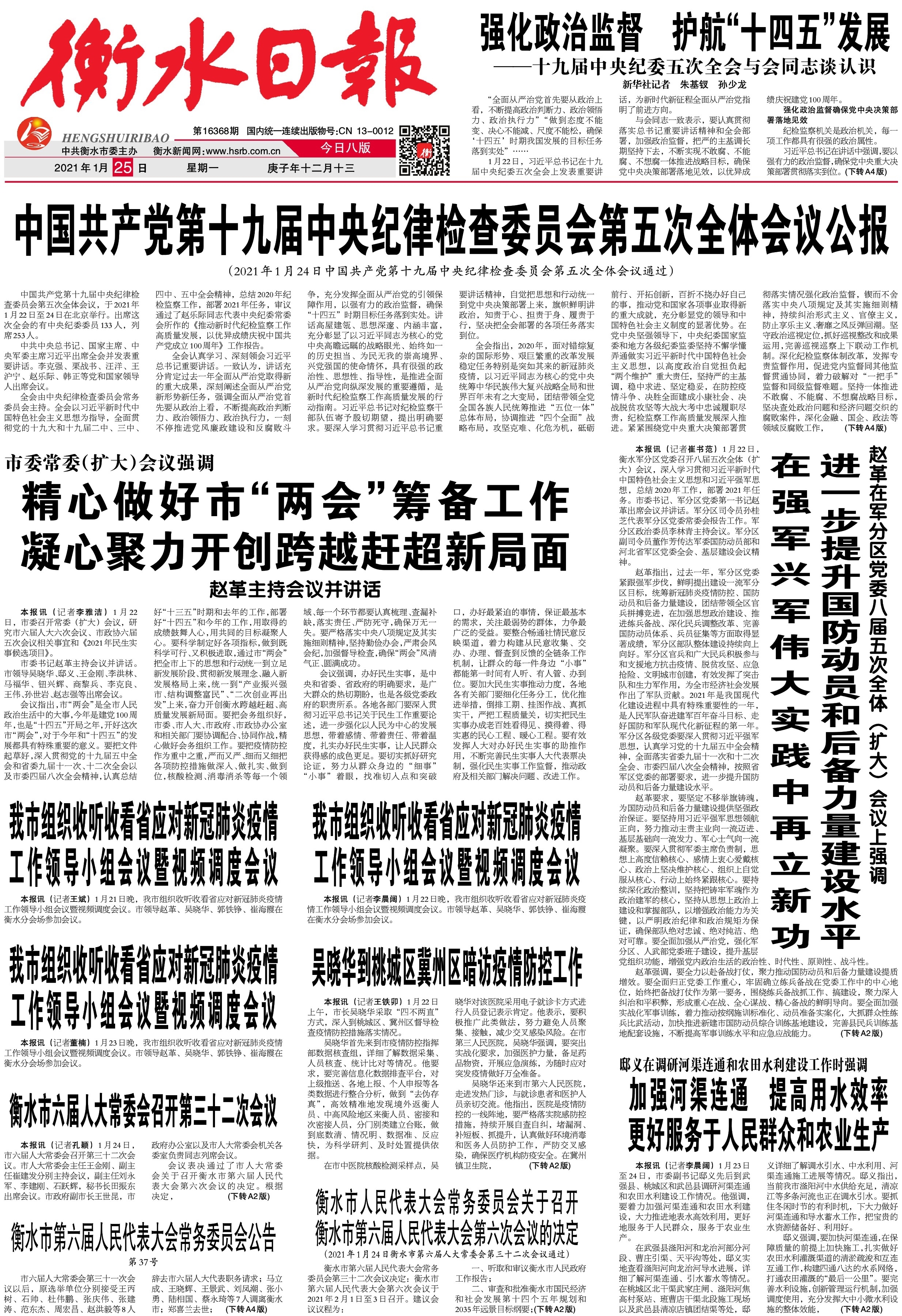 本报讯 (记者 王斌)1月21日晚,我市组织收听收看省应对新冠肺炎疫情工作领导小组会议暨视频调度会议。市领导赵革、吴晓华、郭铁铮、崔海霞在衡水分会场参加会议。