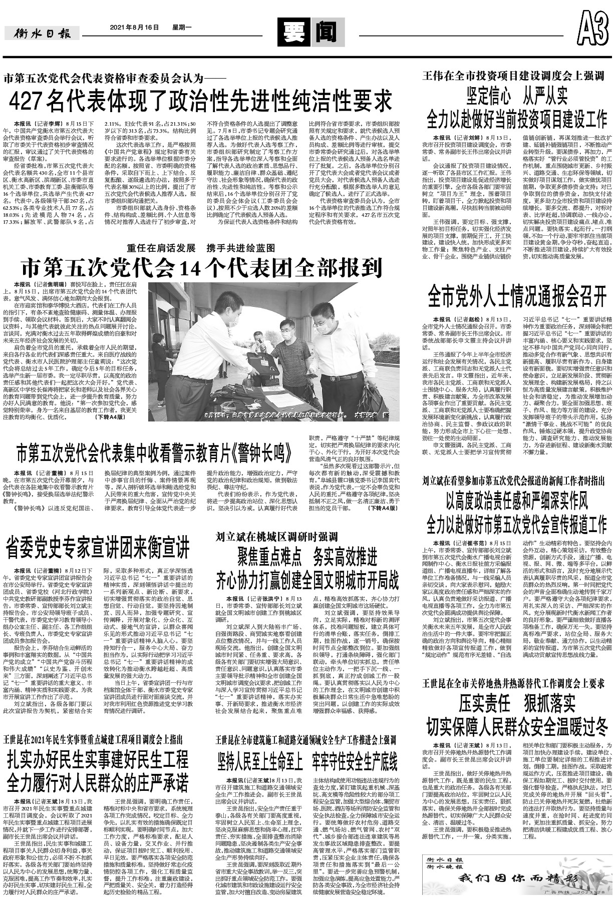 刘立斌指出,各级各部门要以此次宣讲报告为契机,紧密结合实际,采取多种形式,真正学深悟透习近平总书记“七一”重要讲话的精神实质,深刻领悟讲话中提出的一系列新观点、新论断、新要求,切实增强贯彻落实的政治自觉、思想自觉、行动自觉。要坚持因地制宜、因人而异,加强专题研究、宣传阐释,开展对象化、分众化、互动式、接地气的宣讲,以群众喜闻乐见的形式推动习近平总书记“七一”重要讲话精神入脑入心。要坚持知行合一,服务中心大局、奋力担当作为,以实际行动把学习习近平总书记“七一”重要讲话精神的成效转化为推动衡水跨越赶超、高质量发展的强大动力。