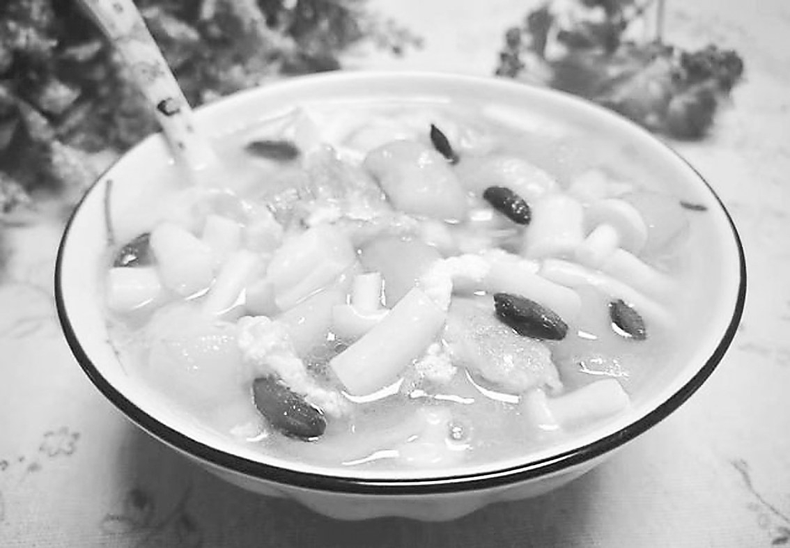 【丝瓜汤】食材:丝瓜、白玉菇、鸡蛋、蒜粒、盐、香油。
