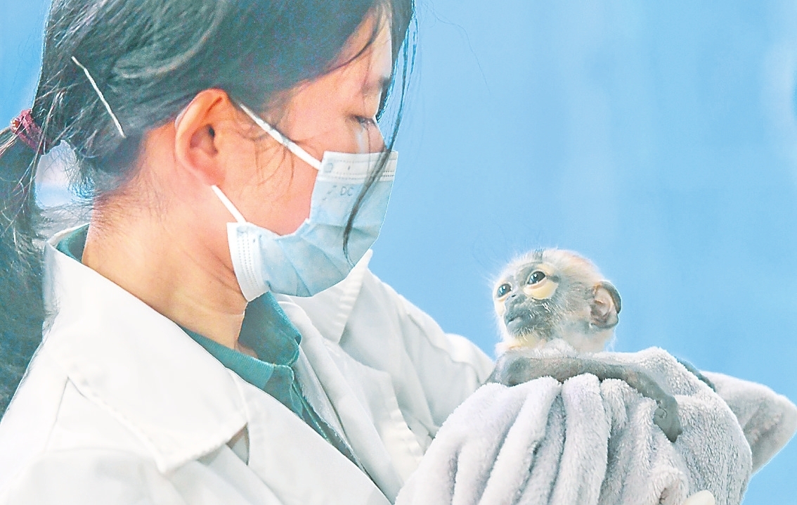 国内首例人工育幼濒危物种黑腿白臀叶猴亮相广州