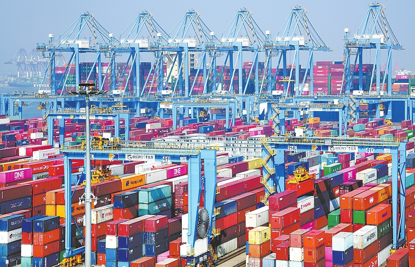 正在作业的山东港口青岛港全自动化集装箱码头(3月24日摄)。