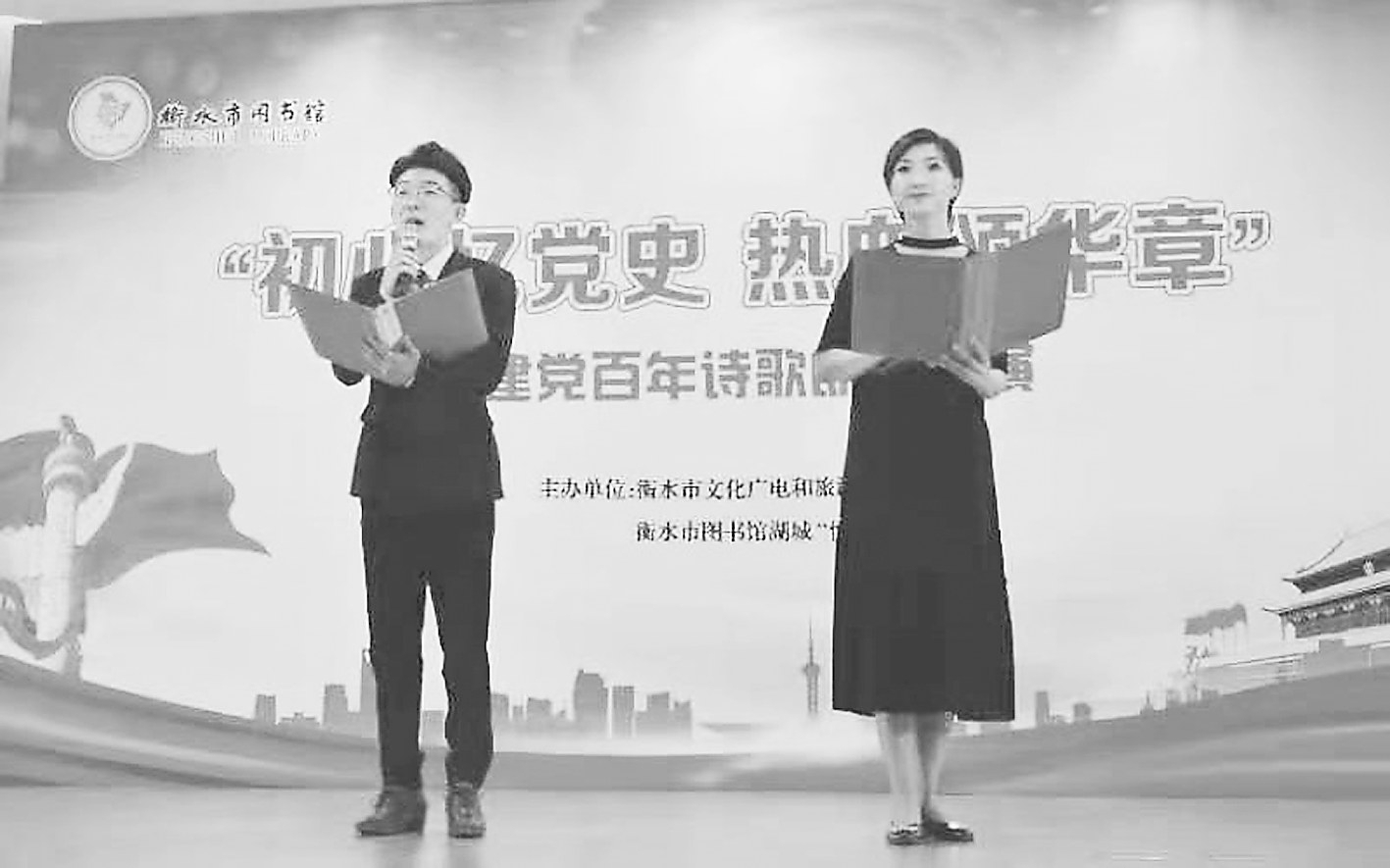 本报讯 (记者 夏晓婷 通讯员 于静瑶)6月30日,由市文广旅局、市图书馆主办的“初心忆党史、热血颂华章”庆祝建党百年诗歌朗诵会在衡水市图书馆举行。