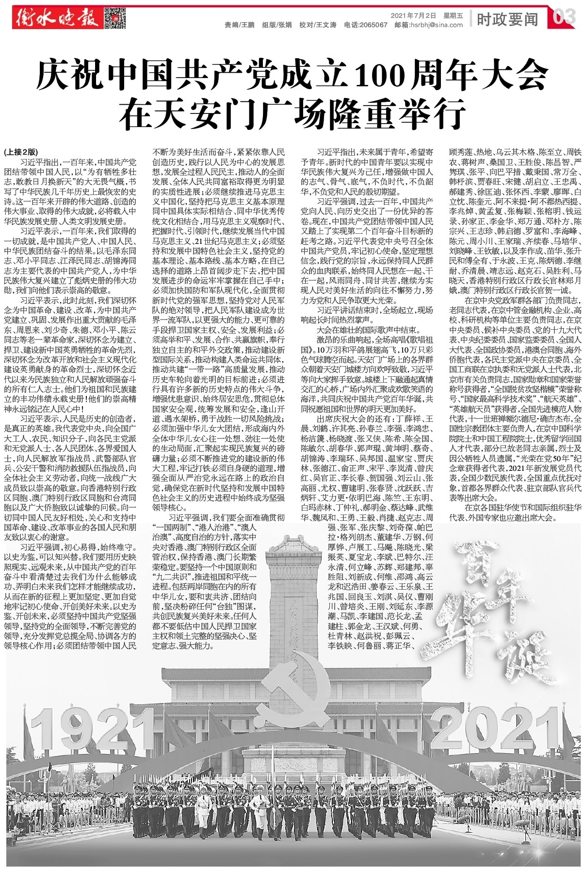 庆祝中国共产党成立100周年大会在天安门广场隆重举行