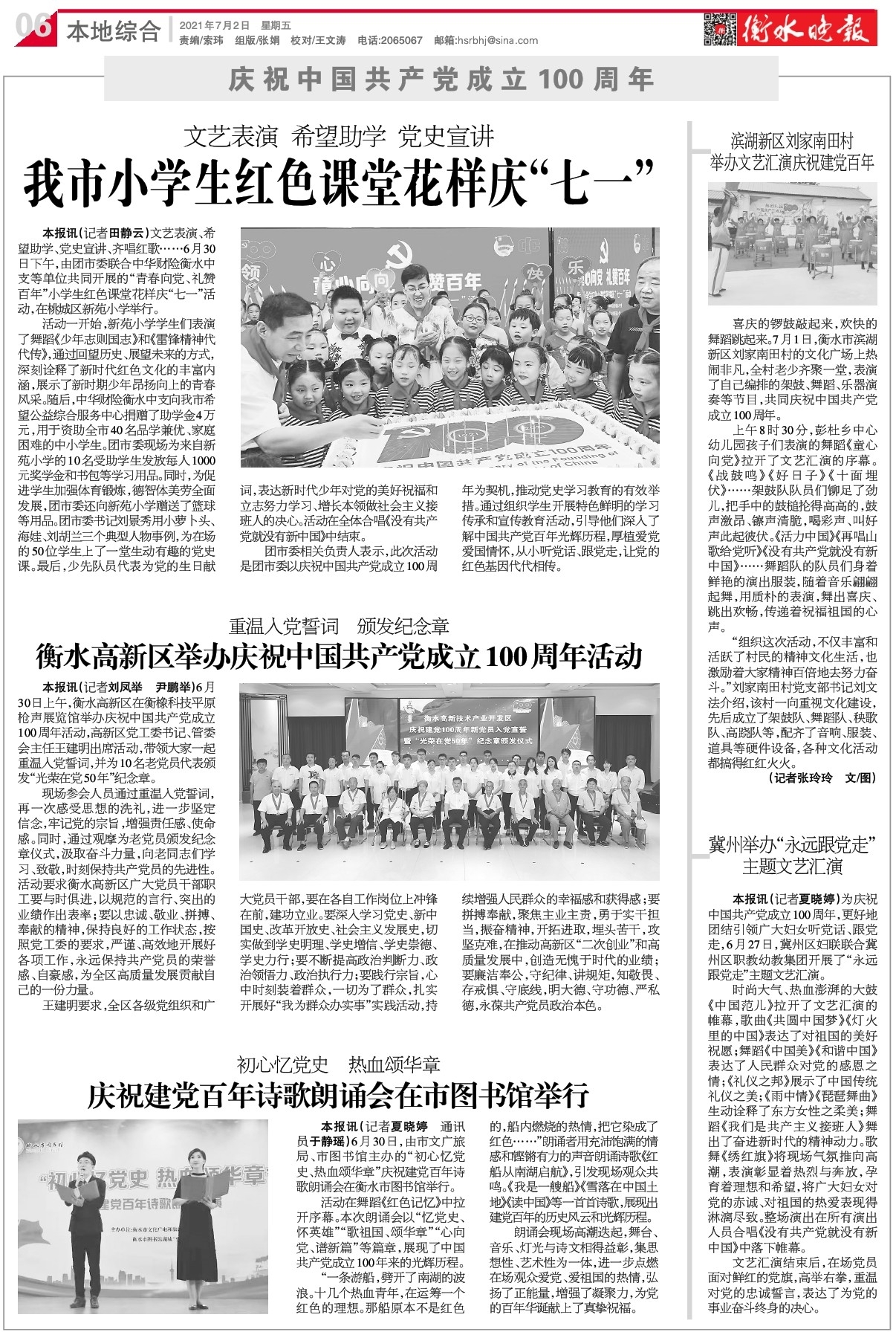 衡水高新区举办庆祝中国共产党成立100周年活动