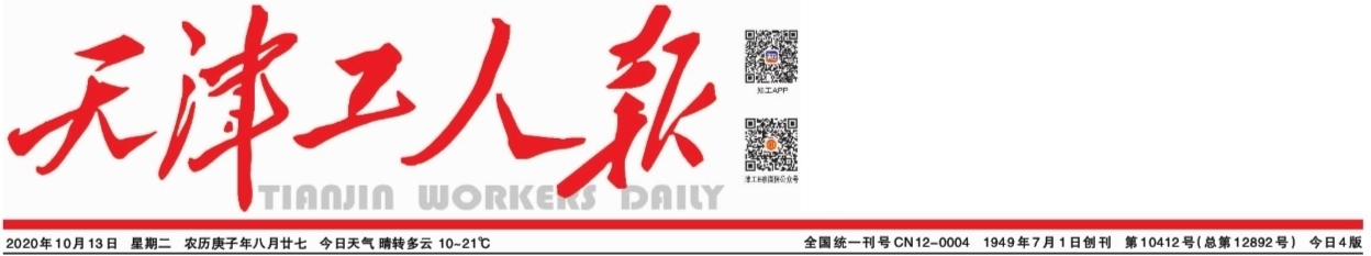 2020年10月13日 星期二 农历庚子年八月廿七 今日天气 晴转多云 10~21℃ 全国统一刊号 CN12-0004 1949年7月1日创刊 第10412号(总第12892号) 今日4版