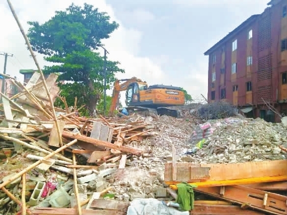 尼日利亚南部拉各斯市10月11日发生一起在建楼房坍塌事故,已造成7人死亡、15人受伤。图为楼房坍塌事故现场。