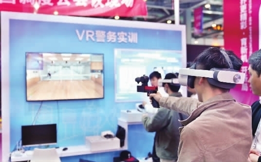 10月19日,2020世界VR产业大会云峰会在江西省南昌市开幕,来自全球的业内领军人物、著名学者等将就人工智能、大数据等话题交流探讨。大会期间还举办VR/AR产品和应用展览会。图为观众体验“VR警务实训系统”。