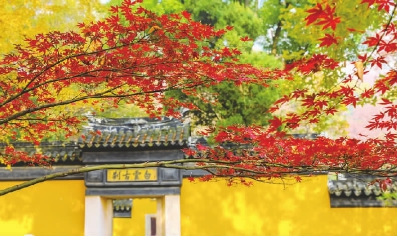 天平山以怪石(万笏朝天石)、清泉(钵盂泉——吴中第一水)、红枫“三绝”著称,尤以红枫为最,每年山中红叶遍野,有“天平红枫甲天下”之誉。看红枫的最佳季节是每年10月底。