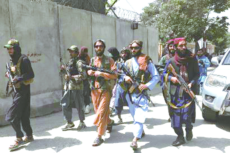 塔利班士兵在喀布尔街头巡逻