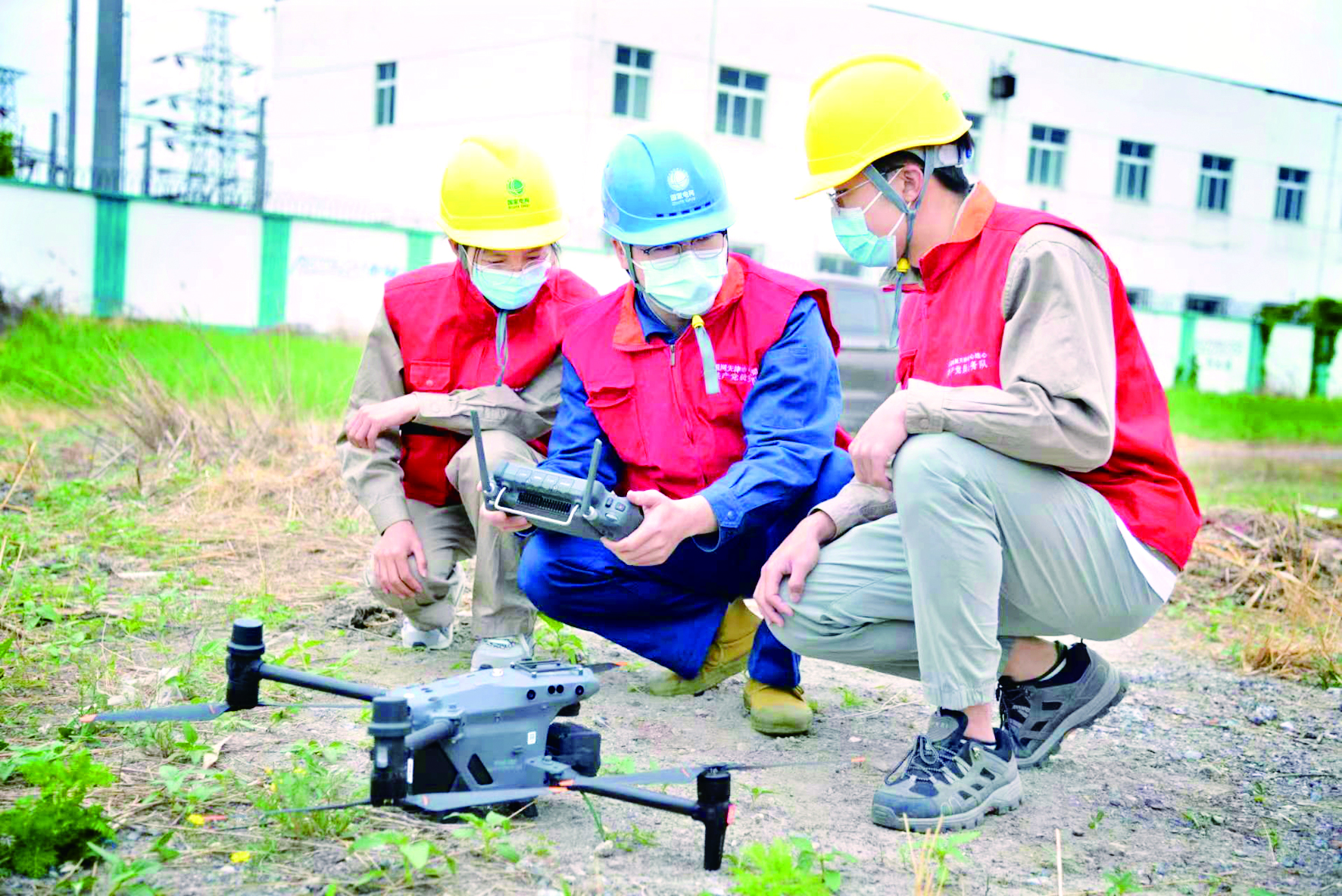 国网天津电缆公司南部中心联合运检部落实公司“三治理”隐患排查治理工作,首次利用新式巡检无人机进行电缆终端隐患排查,做到巡视检测“无死角”。图为工作人员利用无人机排查隐患。 沈岳/摄