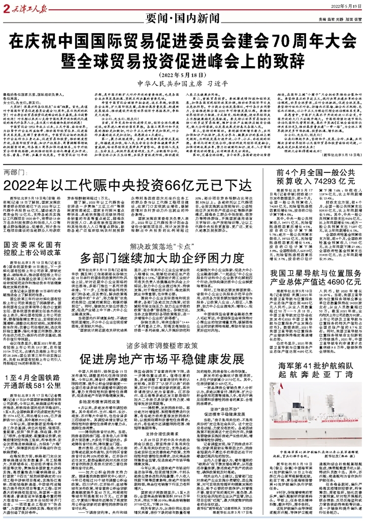 在庆祝中国国际贸易促进委员会建会70周年大会暨全球贸易投资促进峰会上的致辞