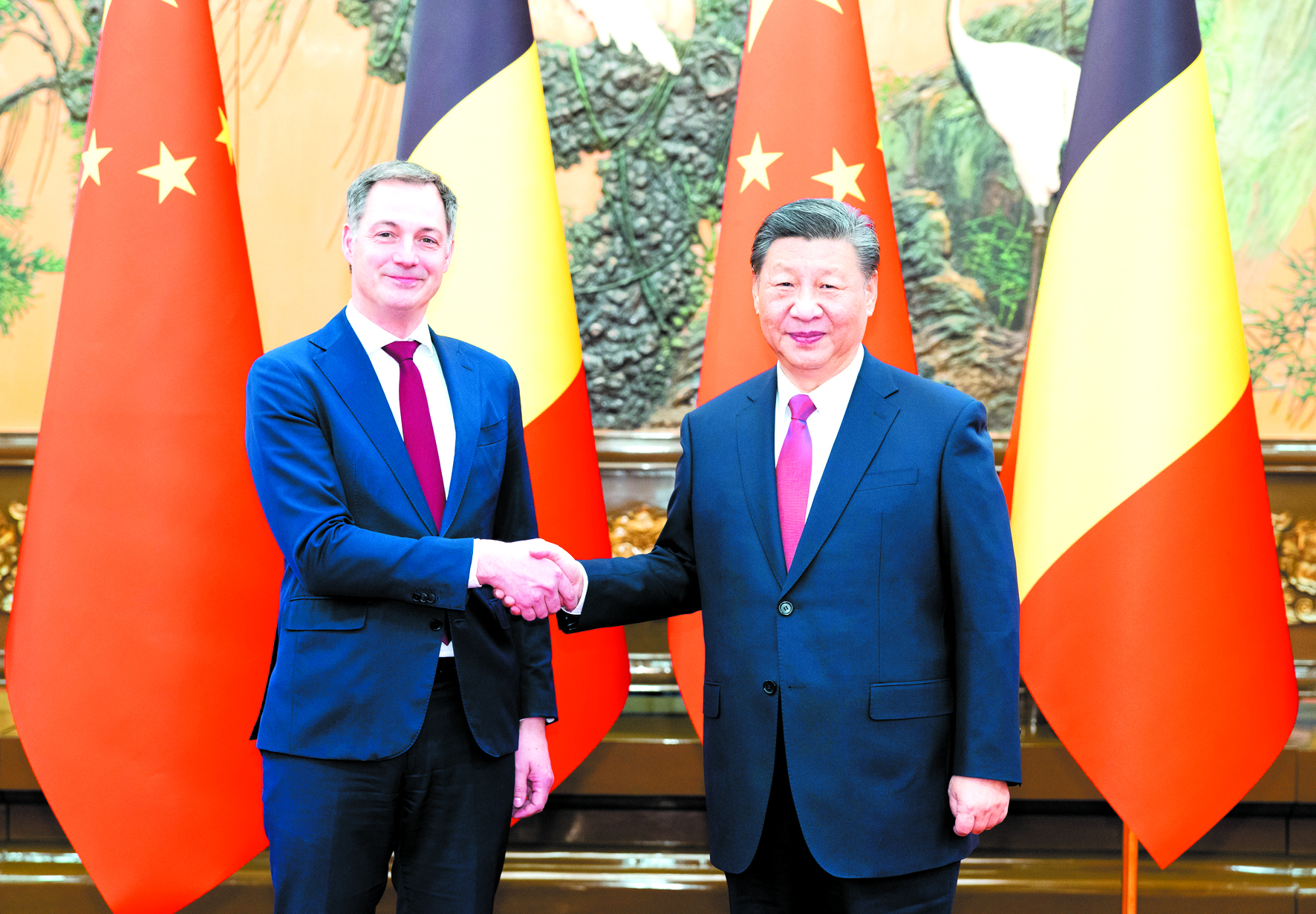习近平指出,中方高度重视中比关系发展。中比建交53年来,各领域合作成果丰硕,惠及两国人民。中比都是经济全球化的受益者,在抵制保护主义、维护自由贸易方面有共同利益。中方赞赏首相先生多次公开发声反对“脱钩断链”,欢迎比利时企业来华投资兴业,愿为他们提供良好营商环境,也希望比方为中国企业提供公正、透明、非歧视的营商环境。双方可以结合各自优势,扩大在交通物流、生物制药等传统领域合作,探讨打造绿色发展、数字经济等合作新增长点。双方要鼓励两国政府部门、立法机构、地方省市加强交往对话,扩大双向旅游和留学生交流,互办大型文化活动,开展大熊猫保护研究,不断增进相互了解和民间友好,为中比关系注入新动力、拓展新前景。中方愿同比方加强在联合国等多边框架内沟通,就应对气候变化、保护生物多样性等议题开展合作。