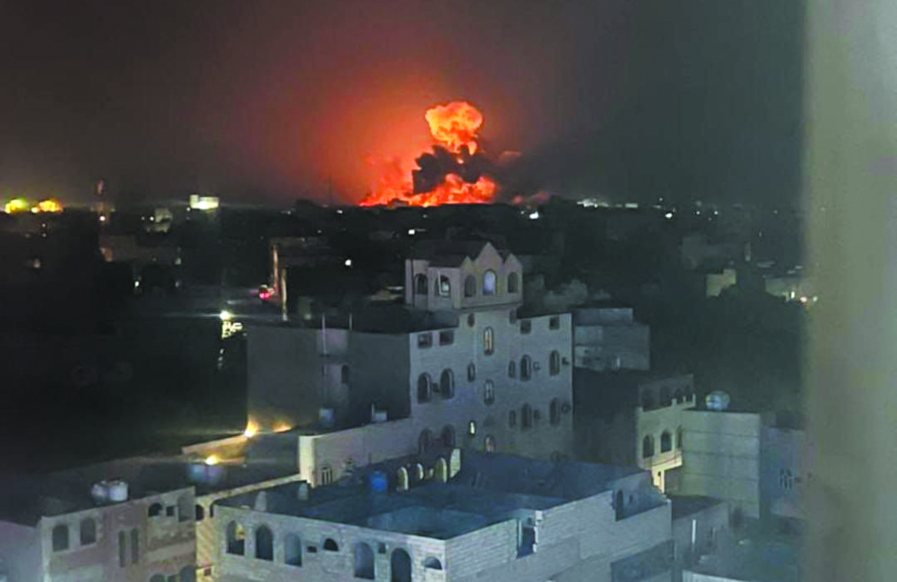 也门首都萨那遭空袭后的爆炸画面 新华社发
