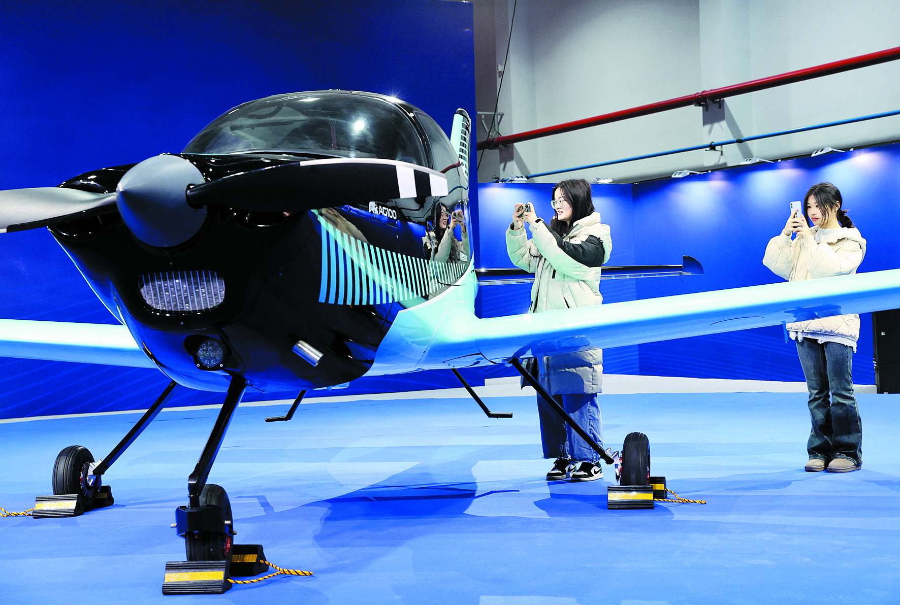 1月19日,由航空工业通飞自主研制的新一代初级教练机领雁AG100首批飞机在浙江省湖州市莫干山高新区临杭产业新区下线交付。图为嘉宾在领雁AG100下线交付仪式上参观。新华社发(谢尚国 摄)