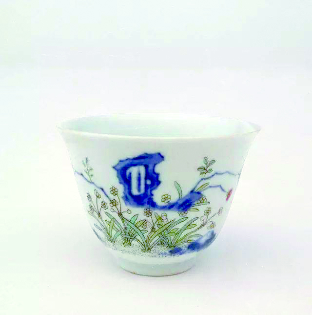 这种造型与纹样的小杯是对康熙十二月杯简化的结果,是乾隆朝不再生产十二月杯以后的一种替代品,从嘉庆朝到宣统朝都有烧造,其造型、纹饰大体一样。由于其纹样多为兰花、山石,故也称斗彩兰石酒杯(或盅)。
