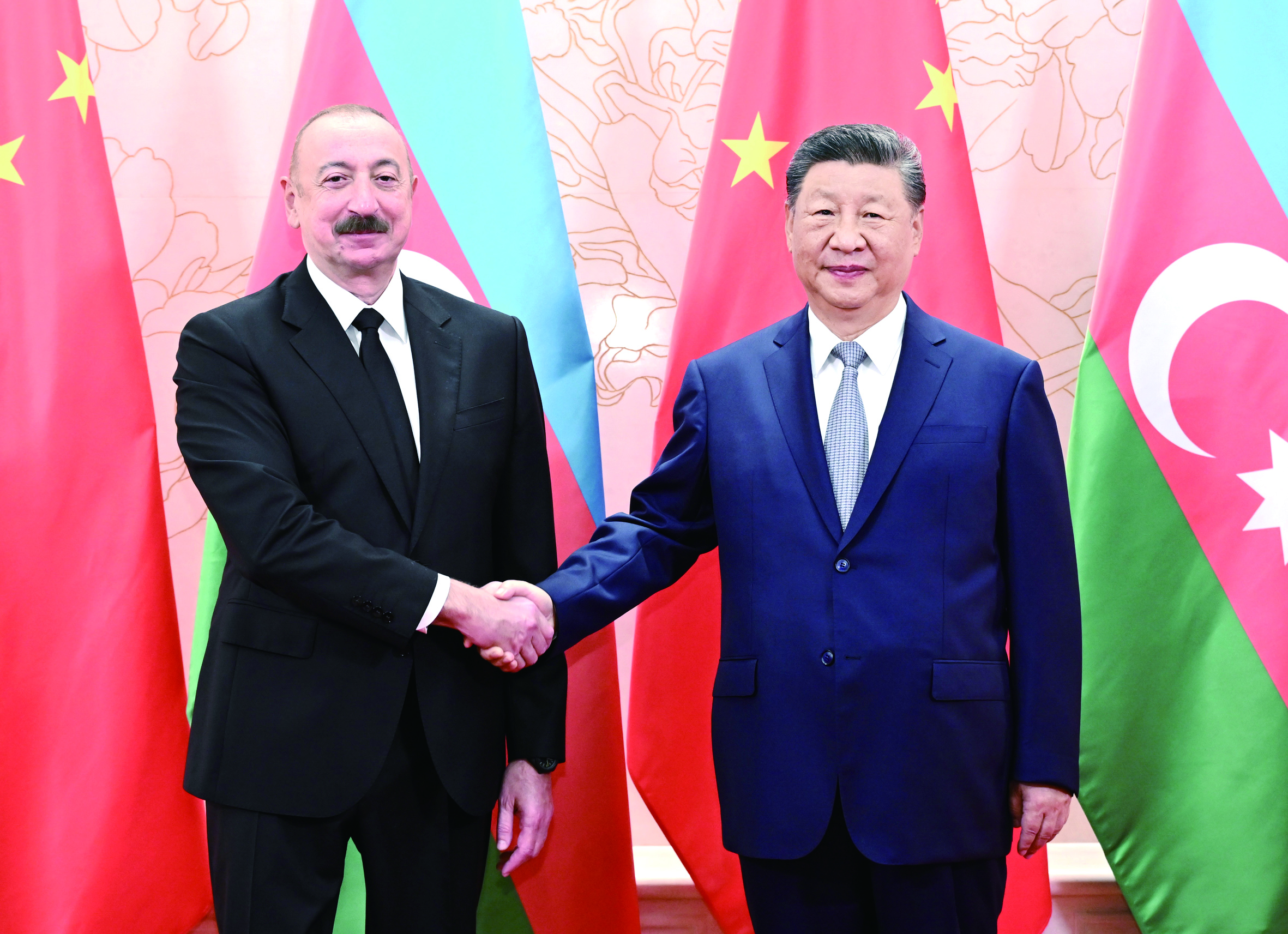习近平指出,中国同阿塞拜疆是好朋友、好伙伴。建交33年来,两国传统友谊日益深化,政治互信持续巩固,互利合作成果丰硕。今年4月,我们宣布中阿建立全面战略伙伴关系,开启两国全方位合作新篇章。中阿两国是发展振兴的同路人,中方愿同阿方一道,保持双边合作蓬勃发展势头,共创两国共赢发展新未来。