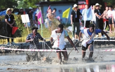 两个比赛都设置了“车水抗旱”“木碾犁田”“陆地龙舟”“推媳妇回娘家”“同心锯木”“鱼塘抓鱼”6个农耕健身项目,吸引了省内百余个县(市、区)代表队参与。此外,还吸引了来自俄罗斯、巴基斯坦、坦桑尼亚、印度、摩洛哥、乌兹别克斯坦、加纳等10个“一带一路”沿线国家的13支代表队与全国11个省(市、自治区)的表队同场竞技,在趣味运动中感受传统农耕文化,体验农味农趣,增进彼此友谊。