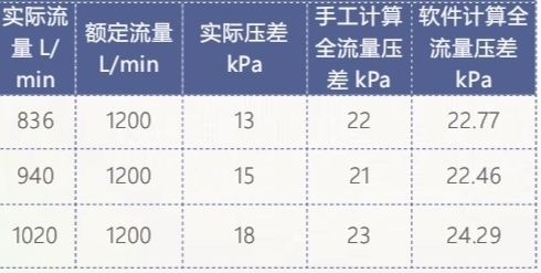 为了评价本软件的压差计算效果,记录过滤器压差计现场数据,同时记录该压差下对应的流量数据,将换算得来的结果与现场实测结果相比较。