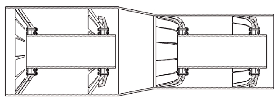 变径皮碗装置是变径设备在役检测驱动运行中重要的环节,现通过对40″管道到48″管道变径检测设备变径皮碗的设计,直接采用48″管道检测器常规皮碗是不行的,在40″管道中运行就会存在漏气现象。变径检测器密封皮碗要求检测器在最大、最小两个口径中都能完全密封,需要有很大的弹性,常规的蝶形皮碗周向上很难做到在两个大小不同圆周上的密封。