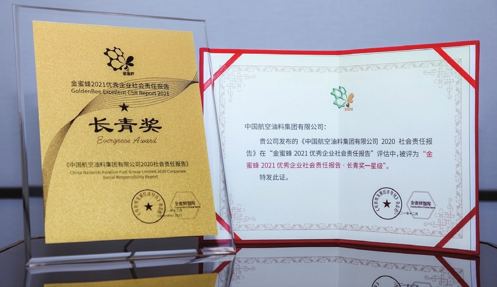 中国航油荣获“金蜜蜂2021优秀企业社会责任报告·长青奖”