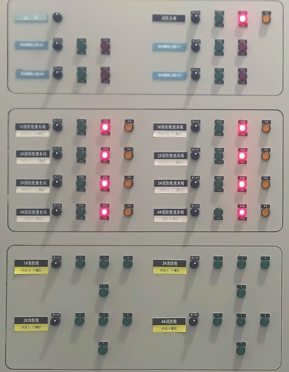 5.按下开启对应区域的消防泡沫炮入口电动阀,调整方向、角度对着火区域灭火。